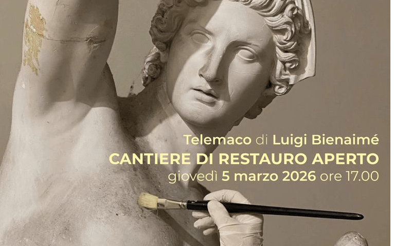 Il restauro del Telemaco – raffigurante il figlio di Ulisse e Penelope e collocato all’ingresso dell’Accademia – costituisce un’importante occasione di approfondimento sulla produzione di Luigi Bienaimé (Carrara 1795 – Roma 1878) e sul suo rapporto con l’istituzione, che lo elesse professore di scultura nel 1844.